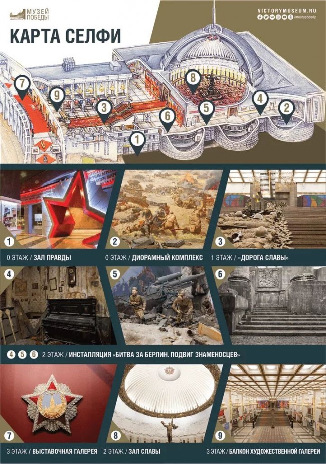 #MuseumSelfie – так называется международная акция, участники которой стремятся сделать оригинальные и необычные снимки на фоне музейных экспонатов, а затем выложить их с соответствующим хештегом в социальных сетях. В этом году к ней присоединится Музей Победы, расположенный на Поклонной горе. Его сотрудниками разработана специальная карта, которая поможет гостям найти интересные для фотографий места. Авторов самых необычных и ярких селфи ждут призы.