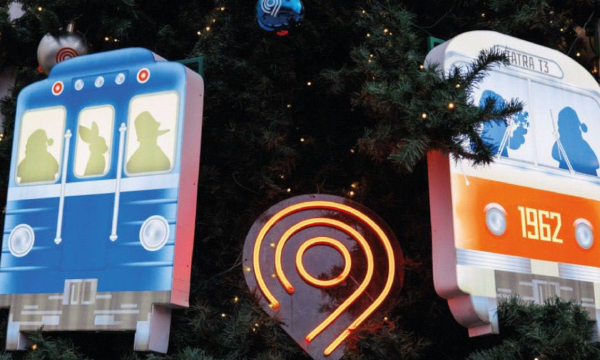 На площади Киевского вокзала в районе Дорогомилово установили елку, украшенную в стилистике московского транспорта. Об этом сообщается в Telegram-канале столичного дептранса.