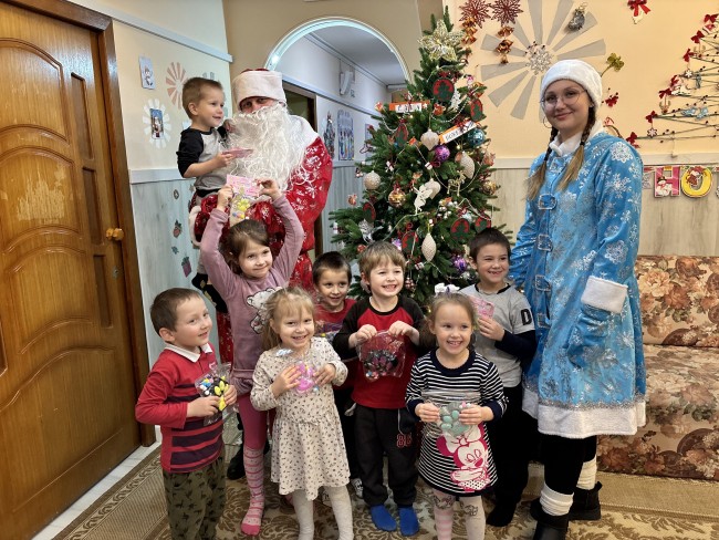 В преддверии празднования Нового года Полицейский Дед Мороз и его внучка Снегурочка постарались создать атмосферу праздника и волшебства для 10 самых маленьких воспитанников семейного центра.