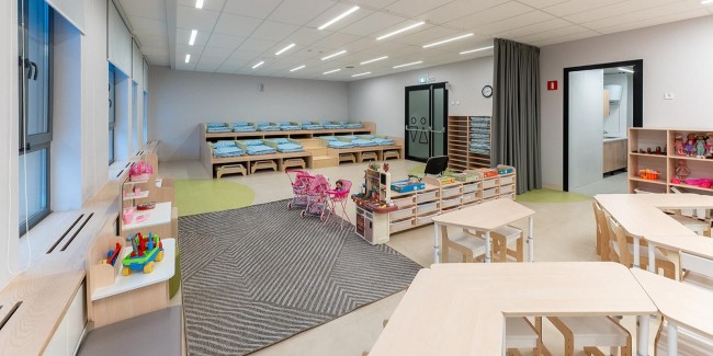 Общая площадь детского сада, расположенного на улице Астрадамская, дом 15в, - почти три тысячи квадратных метров. Декоративный фасад здания выполнен из керамогранитной плитки, стены помещений украшены изображениями деревьев, а прогулочные зоны — животных, героев сказок и космическими видами. В оформлении здания участвовала студентка МАРХИ и начинающий архитектор Валерия Гордеева.